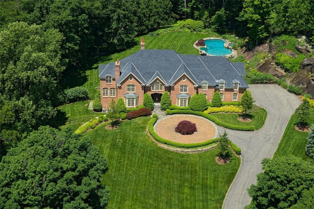 This exceptional brick Manor Estate is designed for entertaining inside and out. Majestically set on 3.7 beautiful acres with a gorgeous Shoreline pool, hot tub and stone terrace for al fresco gatherings and poolside lounging. Inside, the living room with fireplace, well-proportioned dining room and sun room feature a terrific flow. The family room with stone fireplace has tall windows and French doors opening to the terrace; and kitchen has top-of-the-line appliances. The office with fireplace is ready for work-from-home. An aupair/guest room and laundry complete the floor. The lower level continues with a spacious recreation room with fireplace, and a full bath. The second floor primary suite with fireplace has walk-in closets, and a beautifully-appointed spa bathroom. Four ensuite bedrooms, and a bonus room offer spacious privacy for everyone. This private retreat is located on a quiet cul-de-sac bordering back country Greenwich with easy proximity to Bedford & Armonk