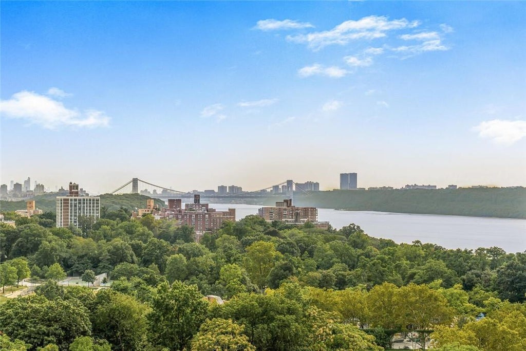 Junior four with over 1000 square feet offering spectacular river, GW Bridge and Manhattan Skyline views from your terrace with a low maintenance of $991 that includes all utilities and the pool. Great layout begins with a generous entry hall which opens up into a spacious living room with an oversized picture window facing South. The Formal dining is sunny with multiple exposures and has an option to be easily converted to an office or second bedroom. The premiere Hudson Towers offers residents 24 hr doorman, central ac/heat, seasonal pool, private playground, garage parking and storage. Walking distance to parks, schools and close proximity to local/express buses. The Spuyten Duyvil Metro North Station is minutes away offering the commuter a 25 minute ride into Grand Central Station. All furniture has been digitally staged.