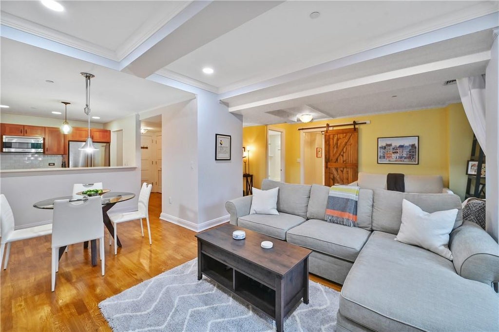 Welcome to the Sweetwater, a full service luxury building that offers a maintenance free lifestyle with 7 day a week concierge's, rooftop garden, gym, library and billiards/community room. This almost 1100ft. open concept apartment is one of the prettiest sun filled corner units in the building with 2 full baths. The unit has wonderful light fixtures in every room including recessed lighting, custom plantain shutters in the living room with an open den which can easily be converted to a second bedroom. The kitchen has been beautifully updated with stainless steel Viking appliances, white silestone countertops, porcelain farmers sink with Kholer faucet & a filter water system all enhanced by white subway tiles back splash. The ensuite primary bedroom has vaulted ceilings, arched triple pane windows, 2 custom closets, marble bathroom with dual vanities & luxurious glass shower. With your very own Bosch washer and dryer in the unit and elevator access to your indoor parking spot, this indeed is a very "sweet living" in the heart of Mamaroneck. Steps to the train, shops, restaurants, movie theater, harbor beach & park. Come live your best life here!