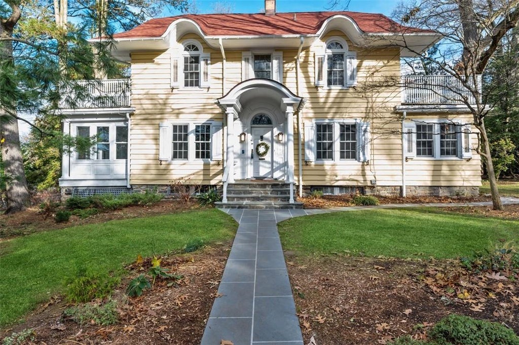 Early 20th century charm and details, combined with updates for modern living, make this turnkey, 1913 colonial the perfect place to call home. The property is situated in Riverview Manor on a just under .5 acre, beautifully landscaped, level, corner lot. Indoor/outdoor living at its finest, with a spacious patio directly off the large kitchen and family room, as well as multiple decks accessible from rooms on the second floor. The living room, with original, wood-burning fireplace, opens onto an enclosed porch. On the second floor is the ensuite primary bedroom with a bathroom featuring a soaking tub, separate shower and radiant floor heating. Three additional bedrooms, including one with its own wood-burning fireplace. Two additional bedrooms on the third floor one of them ensuite offer multiple options, including an au pair, in-law or guest suite. Enjoy a private getaway space on the lower level in your own European-style spa with a sauna and relaxation beds.
