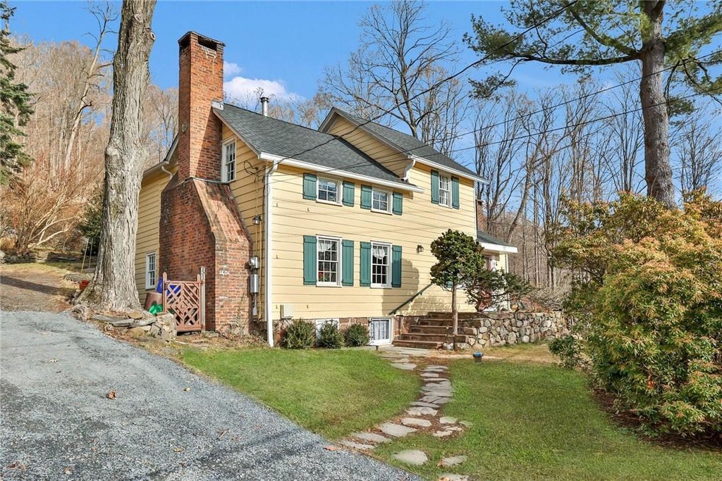 This 1880s Farm house colonial is nestled on 2+ acres of bucolic land adjacent to Hi Tor preserve. This renovated home has been meticulously maintained and preserved embracing the original features while upgrading the systems and structures to modern amenities and renovating the original barn and rebuilding the terraced stone walls surrounding this compound. This antique homestead with original wide board chestnut flooring, chestnut cabinets, with an original wood-burning fireplace with open-hearth predominate the living room, and 2 additional wood burning fireplaces in the den and primary bedroom fill this home with warmth and charm indicating its historical significance. The newly refreshed barn and the wood stove offers many options for creative home/work options. This unique property has been maintained with pristine attention to detail. The newly restored exterior clapboard siding and stone pathways enter into an expansive great room framed with mahogany beams and original plaster walls with bright south-facing windows opening to the charming kitchen with handmade oak cabinetry, built-in cupboard, and light-filled dining area. The den/office is warm and welcoming with southern exposure and a wood burning fireplace with adjacent guest powder room. The second floor offers a large primary bedroom with the third fireplace and chestnut accented builtin cabinetry, additional two bedrooms with original builtins and flooring embrace the vintage historical significance of the home; with updated pink 1950s full bath. The rear slate patios open to the lush natural surrounds with expansive rebuilt stone walls and staircases meandering to the vintage recently restored barn with hiking paths to the forever preserved green space adjacent to the compound. South Mountain Road has always been a haven for creative writers, artists and actors. Original homes once owned by Maxwell Anderson, Lotta Lenya & Kurt Weill as well as John Housemen and Henry V Poor, still predominate this country road transforming the countryside into a quiet refuge only 40 minutes from NYC. A historical treasure for antique conscious buyers who wish to use as a full time or weekend refuge.
