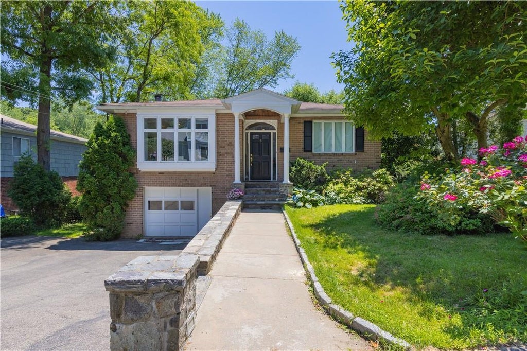 When that easy-living lifestyle is calling, 5 Cross Rd is the answer. Close to all amenities the Village of Ardsley has to offer and situated for an easy commute to Midtown Manhattan. Smart and sassy curb appeal from the pretty front lawn and garden to the brick front, covered entryway and neat white columns. Large driveway for plenty of parking. Entry foyer is light and bright, opens onto spacious living rm w/fireplace and picture windows. Formal dining room w/built-in server. Open-concept MEIK w/granite counters, ss appliances, skylight, peninsula for counter seating. Family room with vaulted ceiling, tall windows and views, sliders to deck. London-inspired wine bar and kid-friendly reading nook. Master suite with slider to deck, walk-in closet, new designer master bath w/soaking tub, double vanity, champagne fixtures and walk-in shower. Two bedrooms, updated full bath. Lower level playroom, guest room, updated full bath, laundry and home office. Walk-out to grassy back yard.
