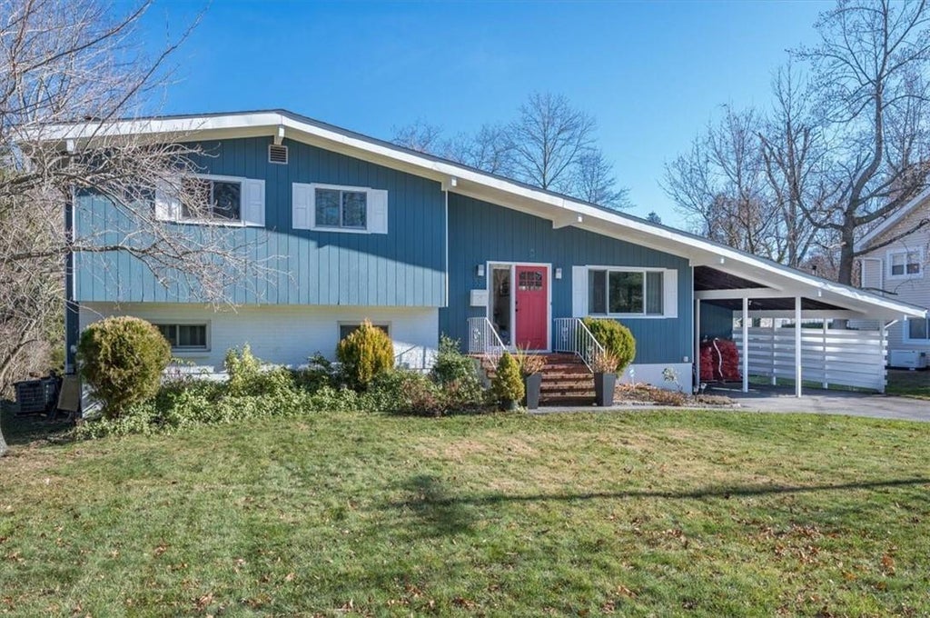 Beautifully renovated,move in ready 3 bedroom -2 1/2 bath home in Poets Corner Neighborhood. All new windows, central air system, alarm, and lighting. Open & bright renovated kitchen, updated lavatory, bright family room w/ huge brick fireplace, built ins, and large sliding glass doors overlooking large patio & level, private backyard. Head upstairs to Master bedroom w/ renovated master bathroom w/2 closets , 2 additional spacious bedrooms and renovated hall bathroom with two sinks. Shuttle bus to Hartsdale train station available