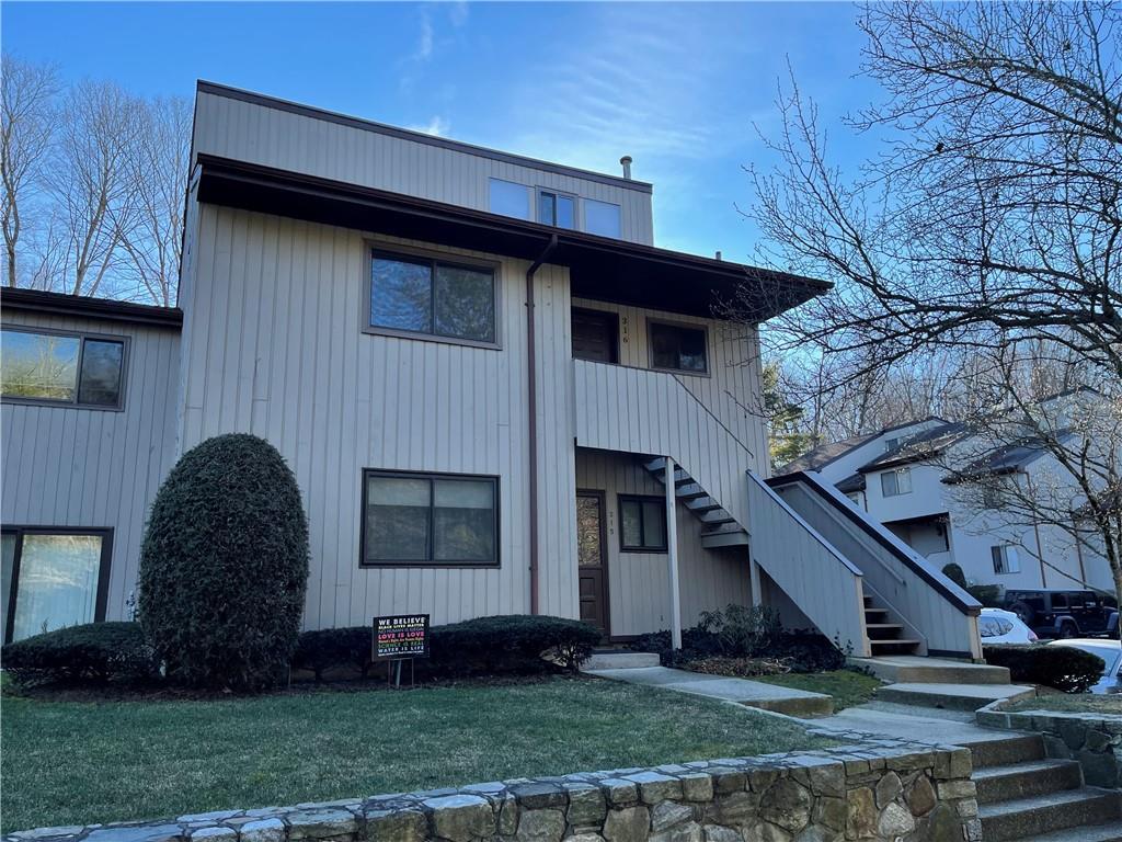 2 bedroom, 2 bathroom fully renovated townhouse available for rent in Chestnut Oaks which is close to the Chappaqua town, schools and train to NYC. The home features a second level entrance and a large front hall closet. The updated kitchen has stainless steel appliances, granite counters and a stone backsplash. The dining area is open to the living room with a fireplace, two-story vaulted ceilings with skylights and sliding glass doors to balcony overlooking a large common yard. The main floor also has a primary bedroom with an en-suite bathroom, a second bedroom, hall bathroom and private laundry. Up the spiral staircase there is a large loft area with vaulted ceilings and a large finished room for the mechanicals and storage. Additional features include central air, new flooring throughout, ceiling fans and a community pool and tennis court.