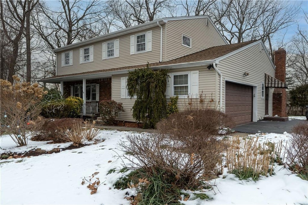 MOVE IN READY! Gorgeous home on a dead end street in prime location. This side hall colonial is designed with room for everyone! Great curb appeal with manicured landscaping and pleasant rocking chair front porch. Large formal living room/Dining room. Beautiful eat in granite kitchen with stainless steel appliances. Spacious family room off the kitchen with a cozy wood burning fireplace. Updated bathroom. Stunning SUN ROOM WITH A HOT TUB! Hardwood floors. Full partially finished basement with recreation room. Beautiful property with lots of privacy!