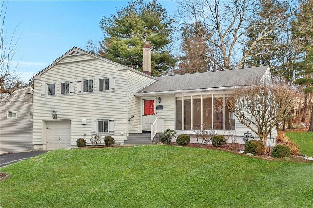 Welcome to the Huntley Estates! This home is all about The Great Outdoors. When not playing in the spacious backyard or entertaining on the large deck, nature is brought into the home through the living room's floor to ceiling bay window and the den's three walls of windows. The ceilings are noteworthy: the living room offers a cathedral ceiling and the den has a beautiful cedar ceiling. Located on a quiet street just off of Joyce Road, one can have it all: award winning Ardsley Schools, Greenburgh recreation and Hartsdale train. The lower level offers an inviting family room/office with an exterior door that leads to the wide, deep yard. There's a place for everyone here; with three bedrooms, two and a half baths, a den/office, family room and even a lower level bonus room. A must-see home. Call to make an appointment today. This one won't last!