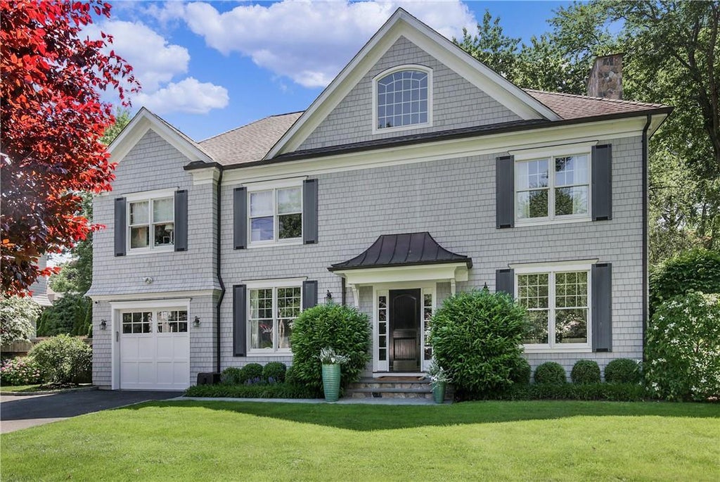 A stunning Colonial, custom designed in 2012 by a celebrated local builder and nestled in Rye's Hix Park. A location to love and a lifestyle difficult to replicate-Halloween parades and block parties, a stroll to the beach, Rye Golf Club, Milton Elementary School & Disbrow Park-this is the neighborhood! This 3,740 sqft home is super chic w/fine finishes, rich wood flrs & sunlit spaces. Step inside to a fabulous entry foyer, stylish FDR w/custom millwork, and elegant living rm. An open flow into coffered ceiling FR w/fpl and chef's kitchen w/sliders to the fenced backyard an entertainer's delight w/lg bluestone patio, stone woodburning firepit, outdoor TV, built-in stone island outdoor kitchen area w/refrigerator and natural gas hook-up for grill and space for a smoker. Enjoy a sunny breakfast area, homework station, premier appliances & mudroom. Four bright bds on the 2nd flr, primary ste w/ showroom WIC and marble ensuite, plus LL playrm, gym area, guest rm/bth & potential wine room!