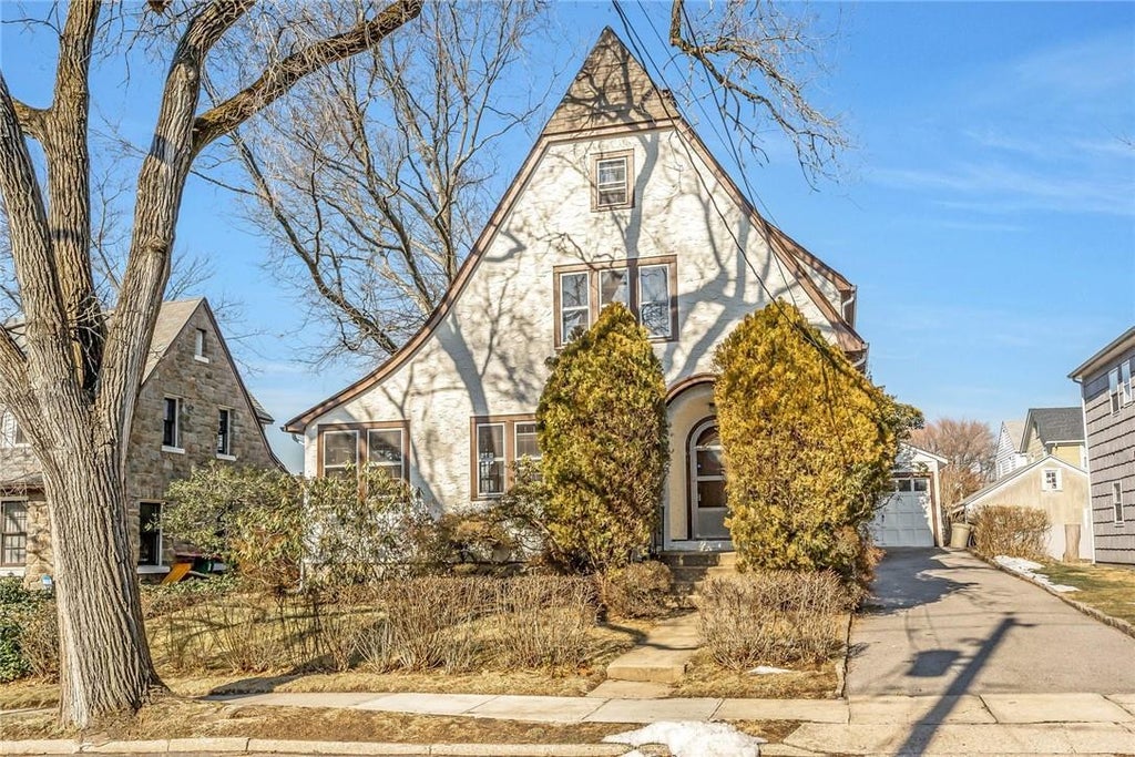 Charming Tudor home on a quiet tree-lined street. Priced to sell! Best value in Rye Neck! Close to everything. Rye Neck schools. Ample natural light throughout the home. Once through the large Entry Foyer, you will find a Living Room with a beautiful fire place, Eat-in Kitchen, Rear Covered Porch, and a Formal Dining Room on the first floor. The Second floor contains the Primary Bedroom and Second Bedroom, as well as a Full Bath. The third bedroom is on the third floor, with an adjoining Den/Office Space. Full unfinished basement has a washer, dryer, mechanicals and a toilet. The exterior is in very good condition. Flagstone patio, beautiful yard, a 1 car garage and a long driveway, to fit multiple cars. This house will go fast!