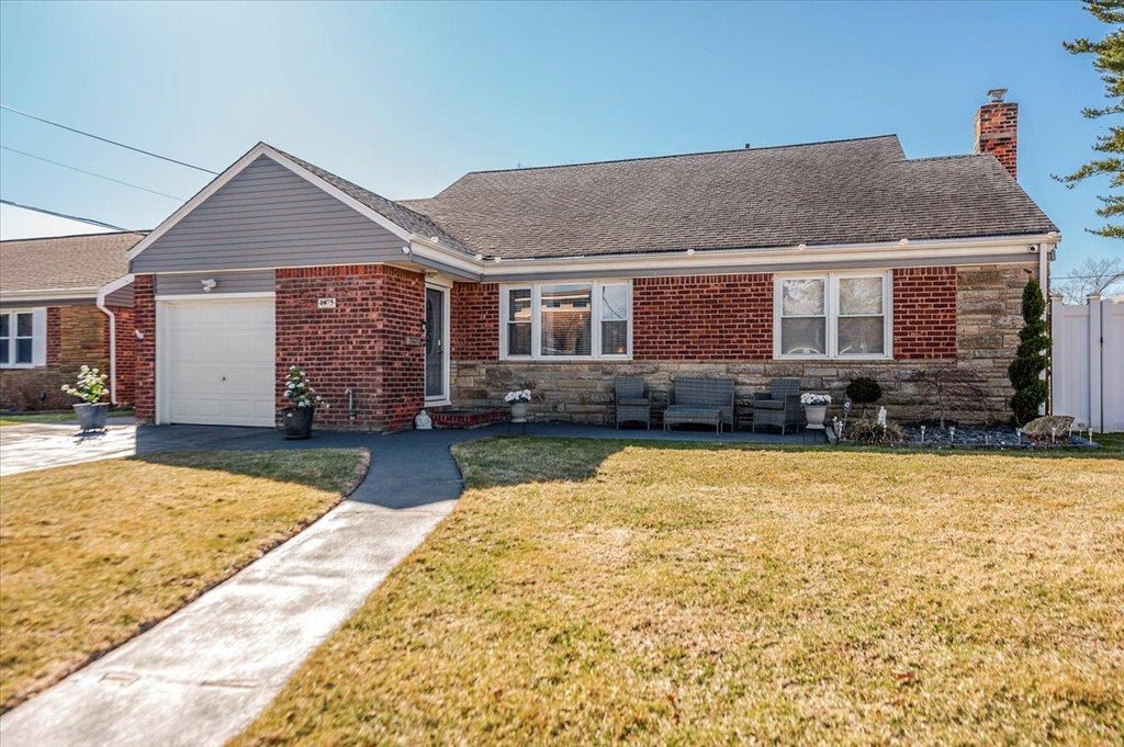 1075 Frances Drive is a solid brick home with a large backyard that is an entertainer's delight. It is completely paved for easy maintenance and has a swimming pool and gazebo. When it is cold outside you can take the fun into the enclosed sun room. There is a patio in the front which is ideal for sitting out and just relaxing. The living room is open to the dining room which is open to the large kitchen. There is plenty of natural light and an open and airy feeling. The first floor has the primary bedroom, a second bedroom and a full bathroom. The second floor has two bedrooms and a full bathroom. All the bedrooms have ample closet space and the second floor hallway has additional storage space. The finished basement offers you more living space with many possible uses. The updates were all done in the past five years and the home is well maintained. There is nothing for you to do except unpack and enjoy your new home.