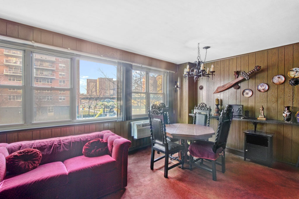 Estate condition 2 bedroom/1 bathroom in Coney Island. Unit #2C features a generous layout which includes a separate kitchen fitted with appliances, including a dishwasher, wooden cabinetry, dining alcove, massive living area with enough space for both your living and dining room furniture, and a sun-drenched king sized bedroom with plenty of closet space, complemented by a second bedroom with additional storage. Additional features include a full bath fitted with a tub, double pane insulated windows, abundant storage space, and original detailing. Very low maintenance with electricity and gas included. The apartment will be sold in 'as-is' condition. 2932 West 5th Street is a well maintained Co-Op building that offers common sitting areas throughout the beautifully landscaped grounds, 24-hour security, on site doctor's office and daycare, as well as a live in super. Other amenities include keyless door entry, newly updated laundry facilities, vending machines, Amazon Lockers, new playground and recreation room. Parking currently has a waiting list. Pets on approval. Excellent location across from the world famous boardwalk and close to B, F and Q trains, shopping, restaurants, the beach and the New York City Aquarium. Note, the photos have been virtually edited and decluttered.